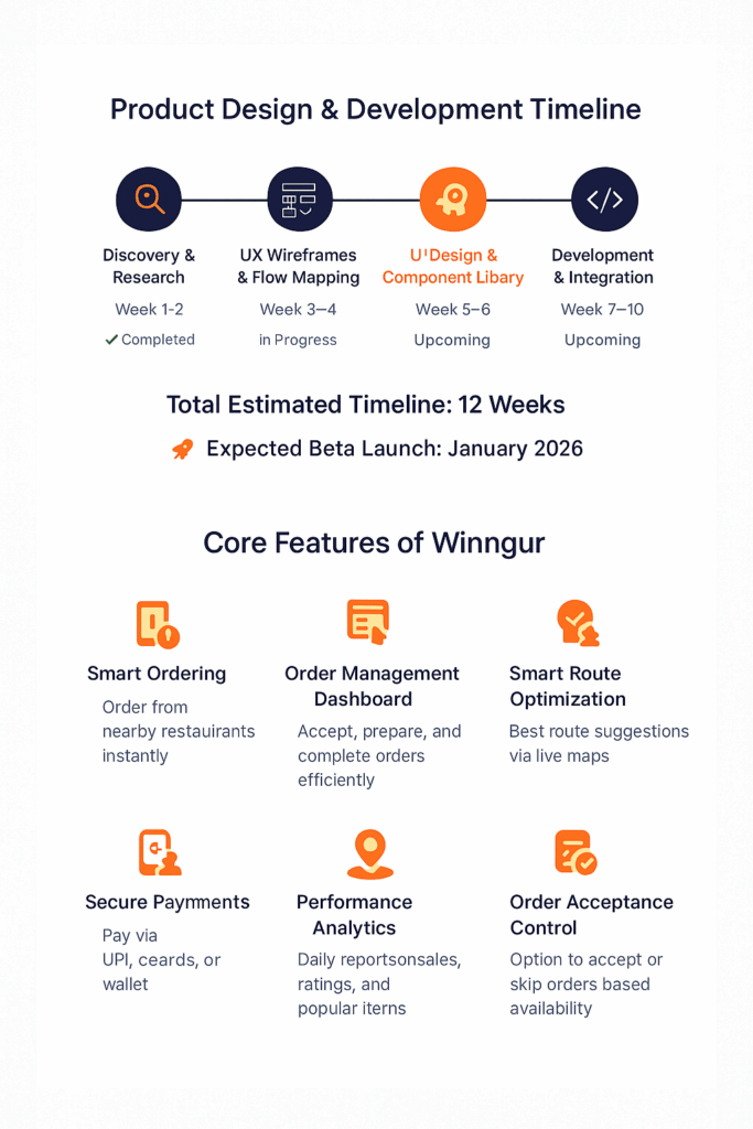 Production Release — We’re gearing up for the full-scale launch of Winngur a smarter, faster, and more reliable food delivery experience. After successful Alpha and Beta testing, Winngur goes live this March to connect customers, restaurants, and delivery partners in one seamless ecosystem